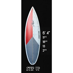 The Step Up is a high performance short board with a bit more volume. It is designed for bigger surf where more speed and drive is needed. Any tail shape can be used with this design, Starting prices quoted are for a clear board with sanded finish. Custom colors and artwork are available. Call or e-mail for current stock or custom orders. Custom board delivery 4-6 weeks